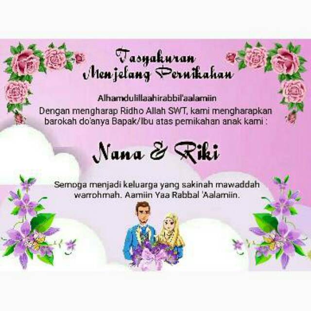 Dengan memohon ridho dan rahmat allah swt, kami bermaksud menyelenggarakan syukuran pernikahan putra putri kami yang insyaallah aka .